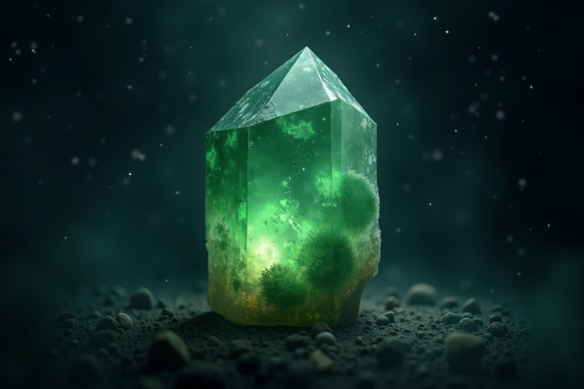 A white stone with green inclusions that strengthens connection to nature and inner peace.