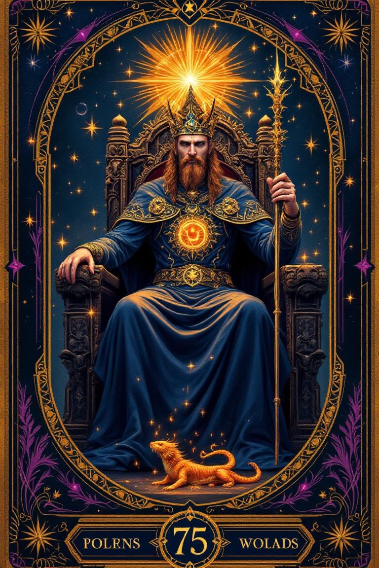 The King of Wands rules with visionary fire. He commands respect through bold action and inspires loyalty through the power of his convictions.