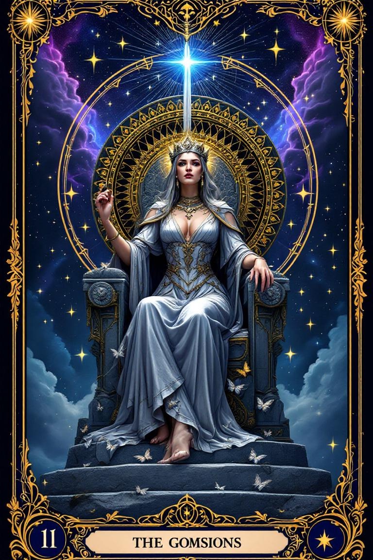 The Queen of Swords rules with crystal-clear judgment and honest communication. She sees through illusion and speaks uncomfortable truths with grace.