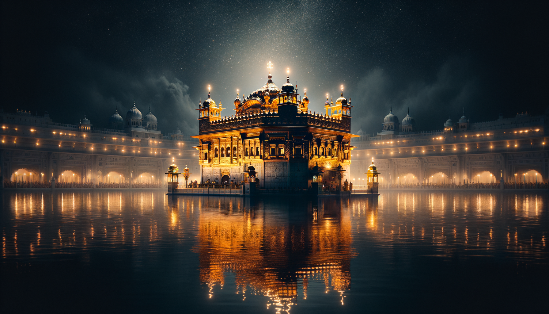 Free Guru Nanak Golden Temple Dark Wallpaper in HD and 4K. Original AI-generated spiritual artwork.