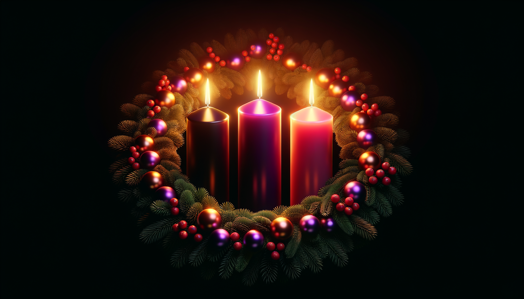 Free Christmas Advent Candles Dark Wallpaper in HD and 4K. Original AI-generated spiritual artwork for desktop, phone, and tablet.