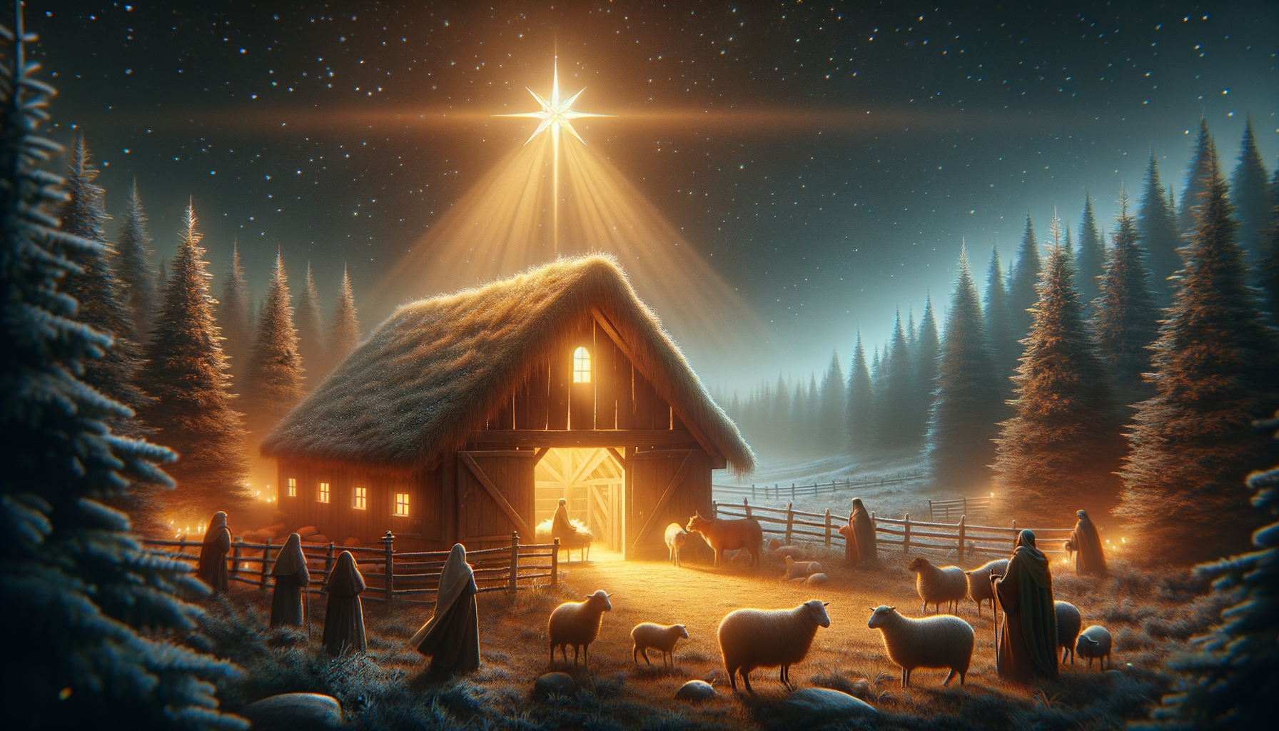 Free Christmas Nativity Star Wallpaper in HD and 4K. Original AI-generated spiritual artwork for desktop, phone, and tablet.