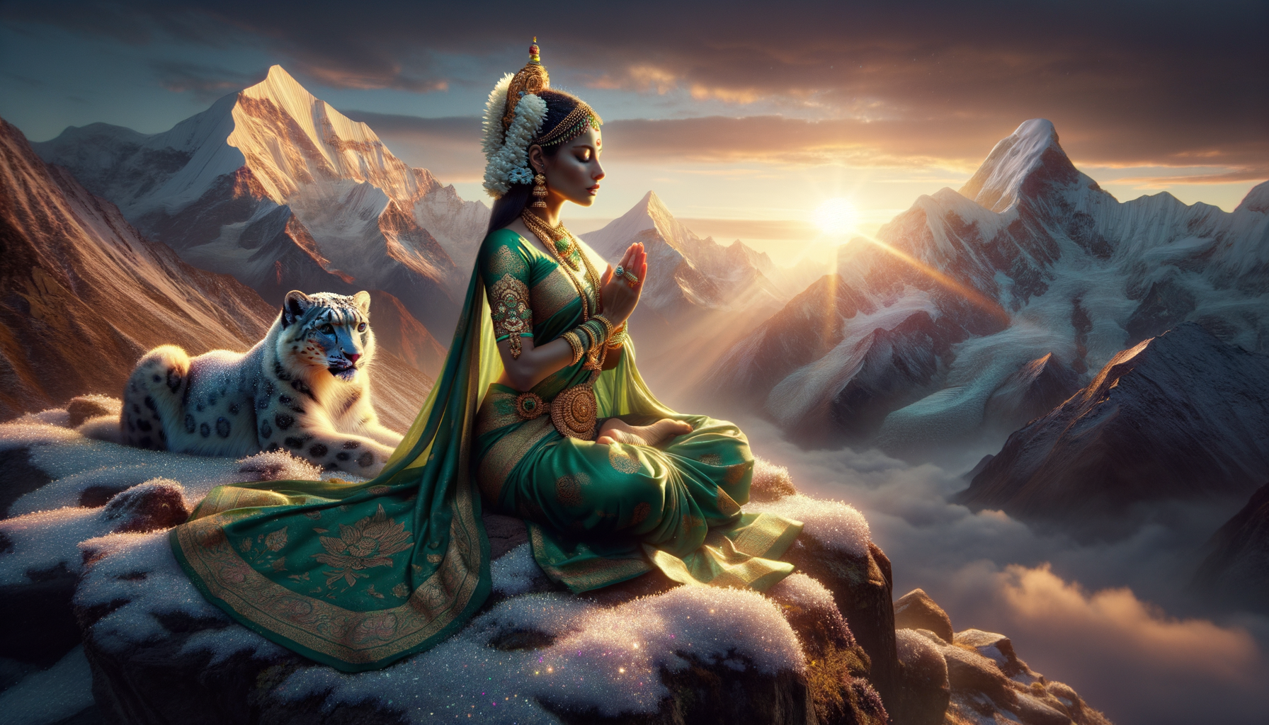 Free Goddess Parvati Mountain Goddess Wallpaper in HD and 4K. Original AI-generated spiritual artwork for desktop, phone, and tablet.