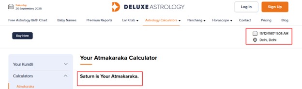 - Saturn as Atmakaraka: Saturn symbolizes discipline, responsibility, and perseverance. Its presence as Atmakaraka shows that the soul evolves through patience, structure, and overcoming challenges.